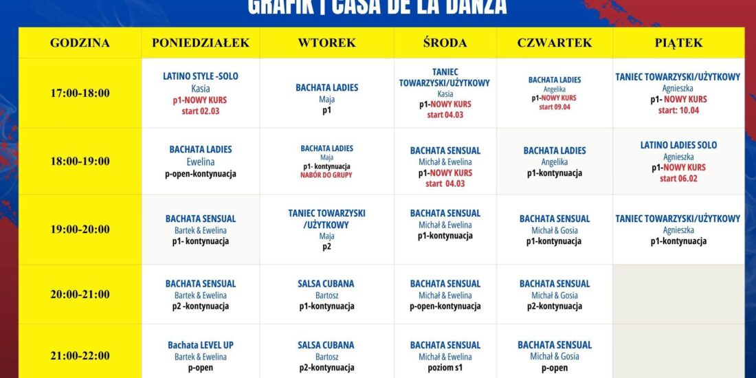 Aktualny grafik zajęć tanecznych – kwiecień / maj 2026