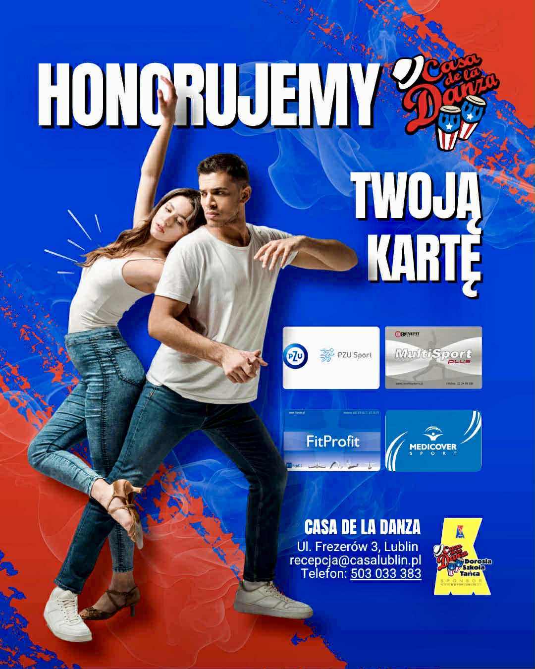 14 lipca 2025 Przez konrad 0 Komentarzy 0 Aktualności Honorujemy karty naszych Partnerów Zapraszamy na zajęcia taneczne aktywnych użytkowników kart partnerskich : * multisport * fitprofit * medicover * pzu sport Udostępnij: